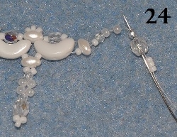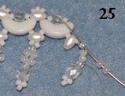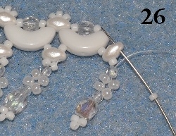 Navlečte 2x TS 11/0 a prošijte 1x O2 (obr. 25). Navlečte 1x TW 15/0 a prošijte 1x M druhou dírkou (obr. 26).