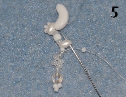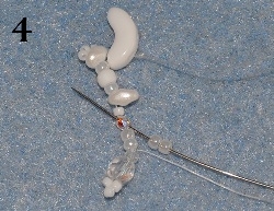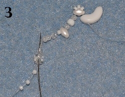Prošijte 1x O4, 1x O2 (obr. 3) a nit utáhněte. Navlečte 2x TS 11/0 a prošijte 1x O2 (obr. 4).