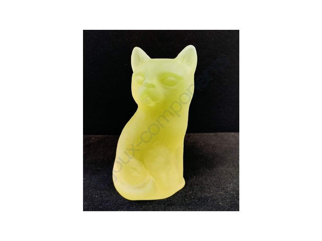 Soška kočky je vytvořena metodou lití uranového skla do dřevěné formy. V důsledku tohoto procesu, zejména u vysokých a úzkých tvarů, sklovina vytváří přirozené a jedinečné sklady (faldíky). Z tohoto důvodu je každá soška naprostý originál.