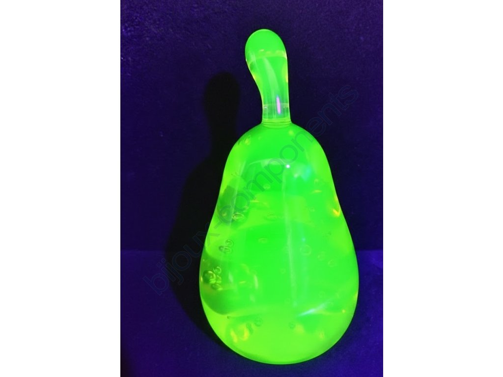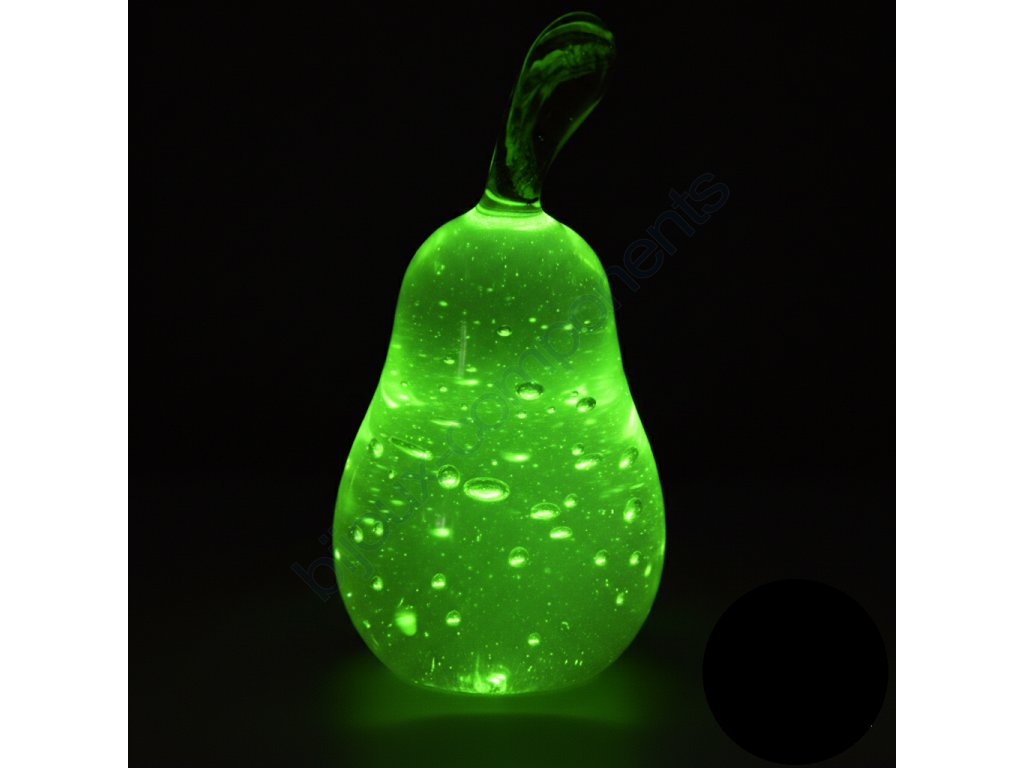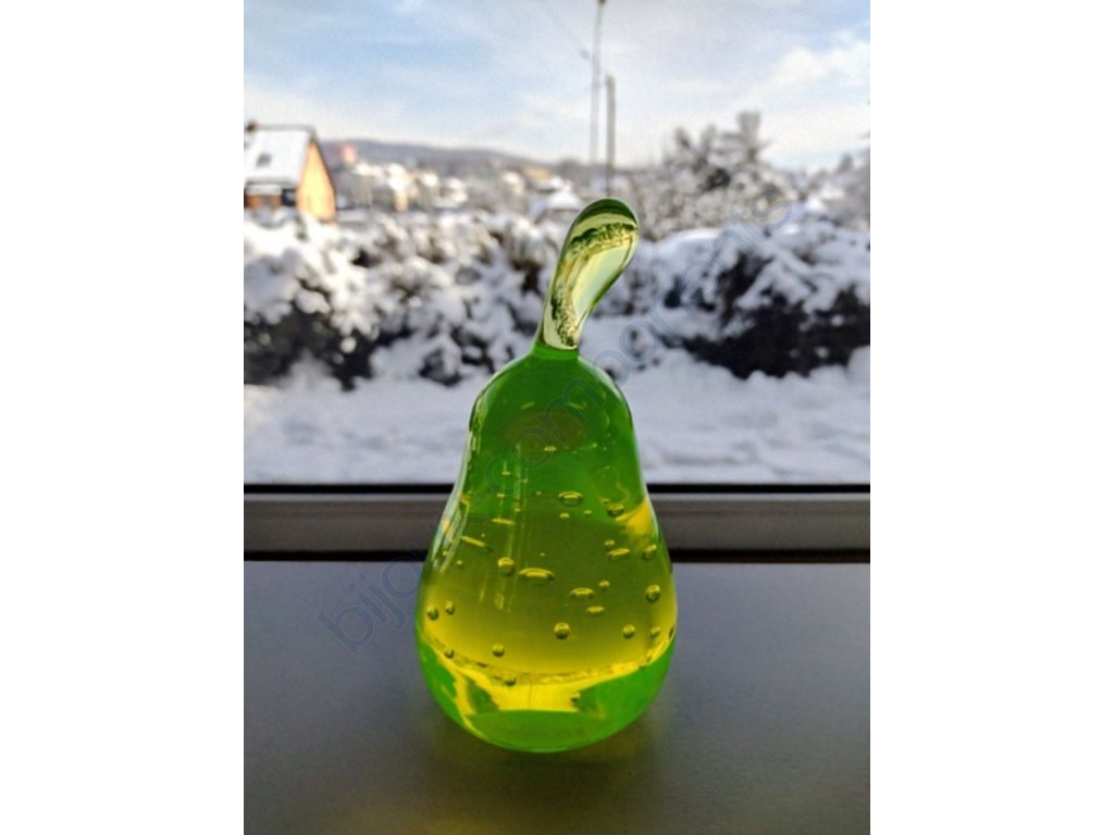 Sběratelská dekorace: skleněná hruška z uranového skla