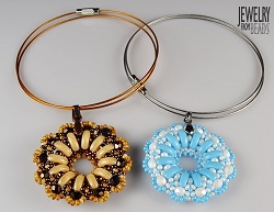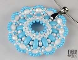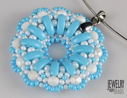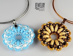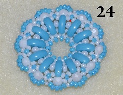 Bílo modrý je kombinován s rokajlem Preciosa, výjimku tvoří pouze samotný začátek z rokajlu TOHO 15/0. Otestovala jsem také, jak se bude donut chovat v případě, když vyměníte rokajl Preciosa 8/0 za korálky TOHO 8/0. Moc se toho nezmění. Pouze okraje budou výraznější – kulatější. Donut není příliš složitý, takže by s ním neměly mít žádný problém ani šikovné začátečnice. Těším se na vaše barevné kombinace.