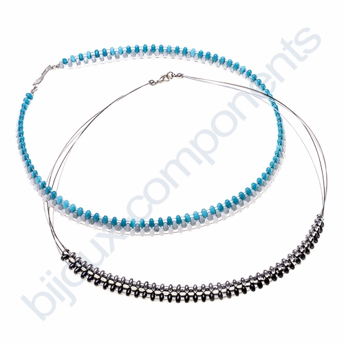 Zamačkávací rokajl můžeme použít rovněž k fixaci korálků různě rozmístěných na lanku a to v jedné u více řadách.