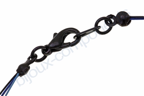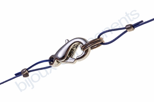 Jak vidíte na obrázcích níže, je více způsobů, jak lanko ukončit. Vždy ale používáme zamačkávací rokajl (někdy psáno rocail). Někdo tyto drobné kovové korálky nazývá také blechami. Prvním způsobem je vytvoření očka přímo z lanka. Do očka navlékneme protikroužek a karabinku a uzavřeme smáčknutím rokajlu. Rokajl lze smáčknout plochými kleštěmi nebo speciálními kleštěmi na rokajl. Druhou variantou je použití kalot. V našem případě jsme zamačkávacím rokajlem spojili všechna lanka víceřadého náhrdelníku a tento spoj pak ukryli do kaloty, na kterou je připevněna pomocí kroužků karabinka s protidílem.