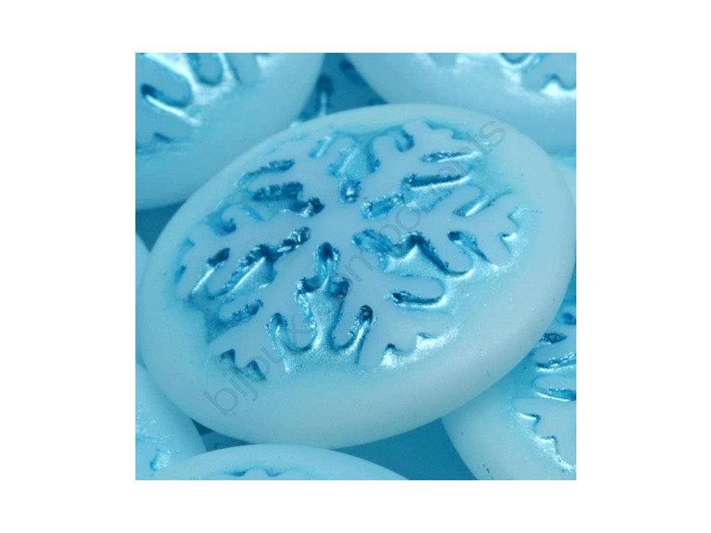 Kabošon - sněhová vločka, bílá se světle modrým zátěrem