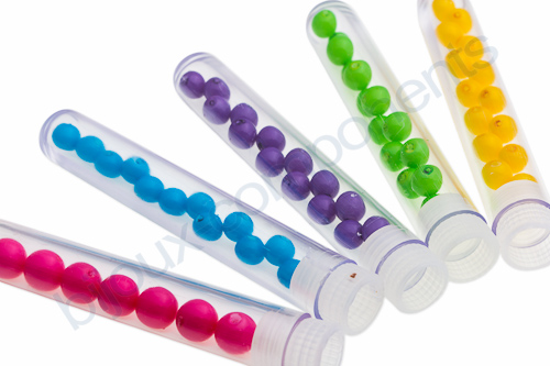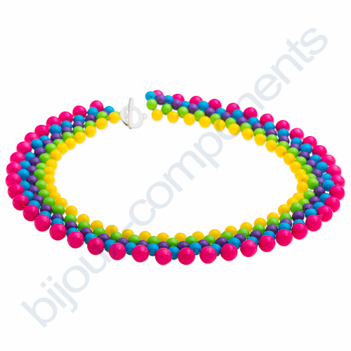 po 45 - 46 korálcích 6mm ve 4 barvách - my jsme použili voskované korálky v pestrých barvách, 45 - 46 je proto, že v každé sudé řadě je potřeba o jeden korálek více než v liché