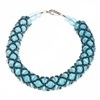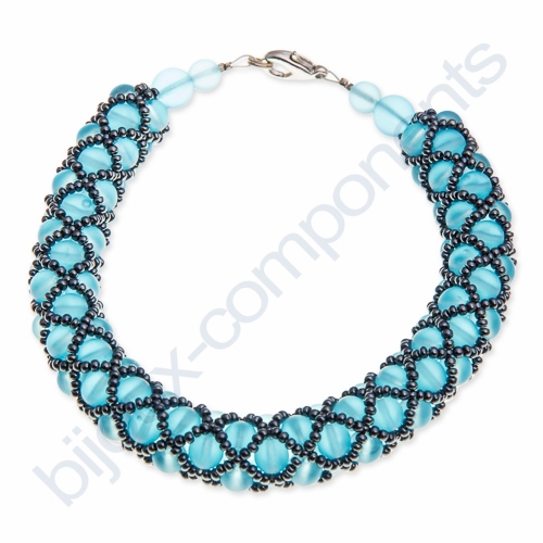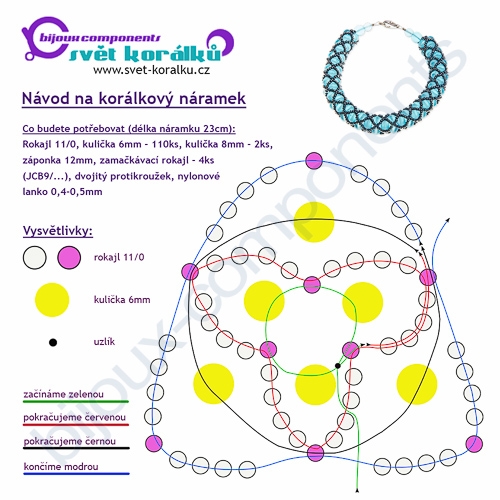 Jak jsme již v soupisu potřebného materiálu uvedli, pro začátečníka je lepší volit 2 barvy rokajlu a to z toho důvodu, že nemusíte počítat a práce je přehlednější. Jeden rokajl odlišné barvy přidáváme do místa, kde vzniká křížení síťky, pokud použijete pouze jednu barvu, musíte vždy odpočítat středový korálek.