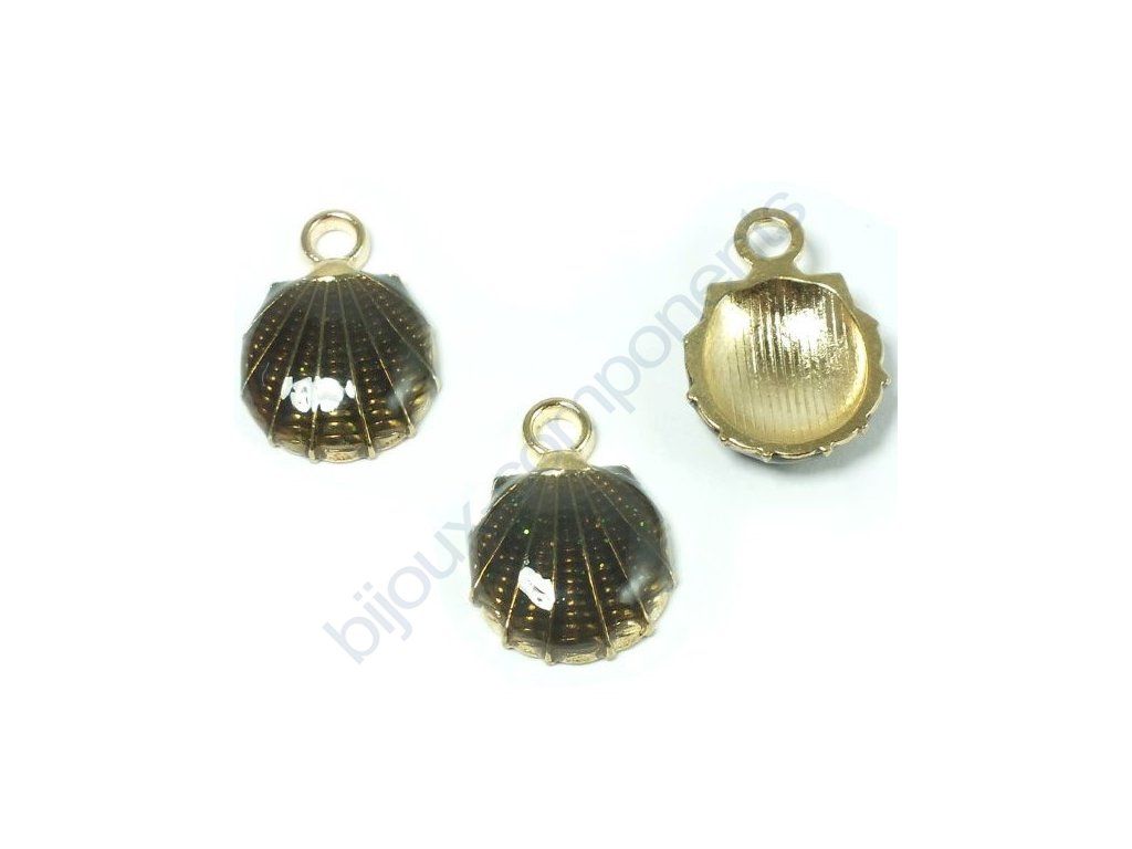 Elegantní kovový přívěsek ve tvaru mušličky je ideálním komponentem pro tvorbu letní bižuterie, doplňků s námořnickou tématikou nebo drobných dárků. Díky kombinaci zlatého základu a tmavé výplně působí luxusním a nadčasovým dojmem. Tento přívěsek vyniká detailním žebrováním, které je zdůrazněno lesklou tmavou výplní s jemným třpytem, zatímco zadní strana a okraje jsou v kvalitním zlatém provedení.