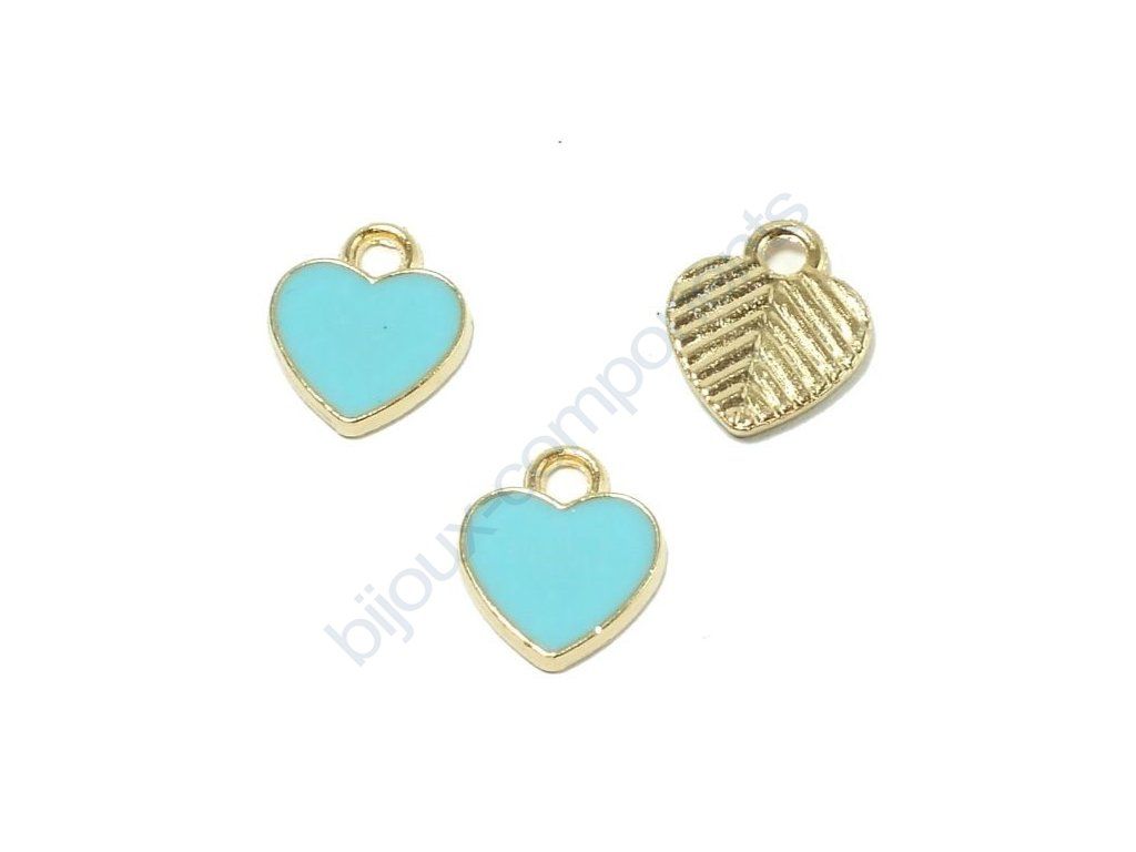 Dodejte svým šperkům jemný nádech romantiky a svěžesti. Tento drobný kovový přívěsek ve tvaru srdce je ideálním komponentem pro tvorbu bižuterie. Přední strana zaujme hladkým tyrkysovým smaltem, zatímco zadní strana je zdobena elegantní plastickou texturou, připomínající lístek.