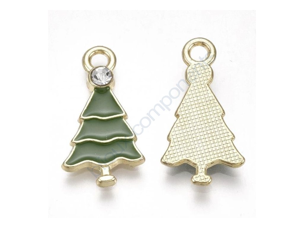 Kovový přívěsek smaltovaný - vánoční stromek, cca 21 x 11 x 3 mm