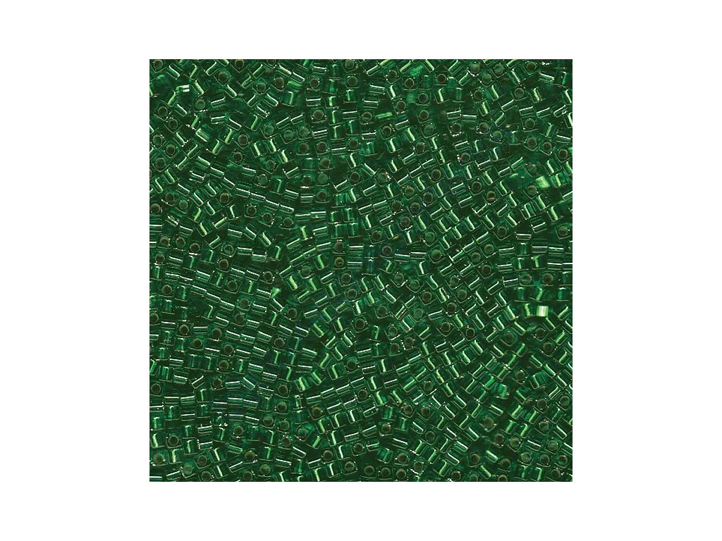 MIYUKI Square – skleněné korálky zelená se stříbrným průtahem