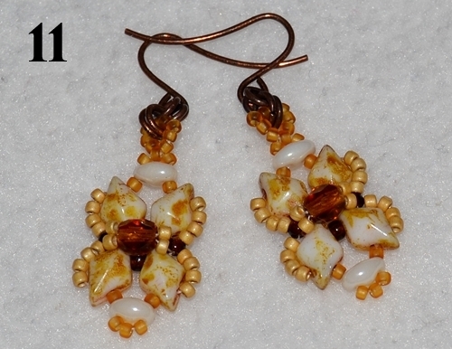 Do očka přidejte kroužky (raději používám dva pro větší pevnost) a přidělejte náušnicové zapínání (obr. 11). Druhou náušnici ušijte stejným způsobem.