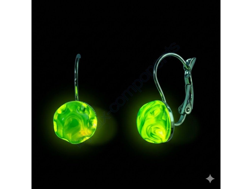 Dopřejte si šperk, který v sobě nese víc než jen krásu. Tyto elegantní náušnice s mačkanými uranovými kabošony jsou dokonalým spojením tradičního sklářského řemesla a moderního designu. Zatímco na denním světle vás okouzlí jemným modrým odstínem a mléčnou strukturou, pod UV světlem odhalí svou pravou tvář – rozzáří se intenzivní, neonově zelenou fluorescencí.