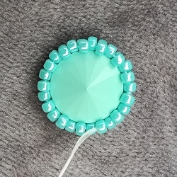 Po dokončení základního obšití lze rivolku různými druhy zdobit. Pro začátek si ukážeme jeden z těch jednodušších způsobů. Po dokončení obšívání jehlou projedeme do prostředního korálku celého obšití.