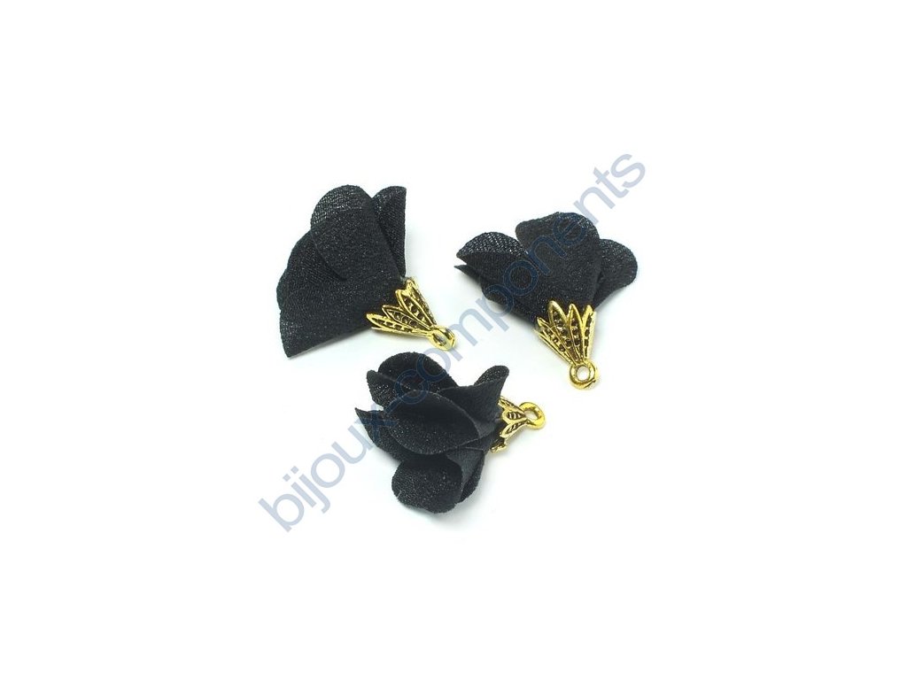 Ozdobný kvítek černý s kaplíkem (starozlato), cca 25mm, balení=2 ks.