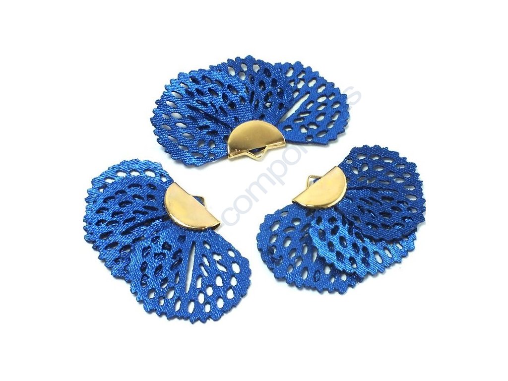 Ozdobný kvítek - vějířek s pozlaceným kaplíkem, cca 25 x 41mm, balení = 2 ks.