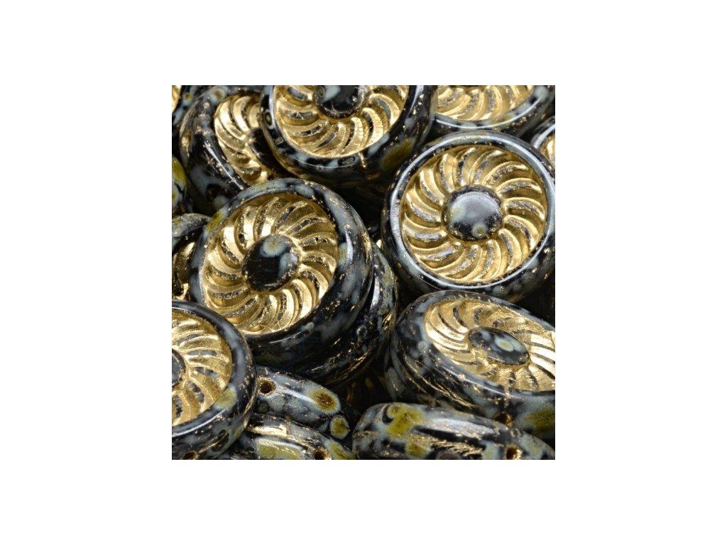 Ploškované korálky - industriální design turbíny - černý travertin se zlatým zatíráním
