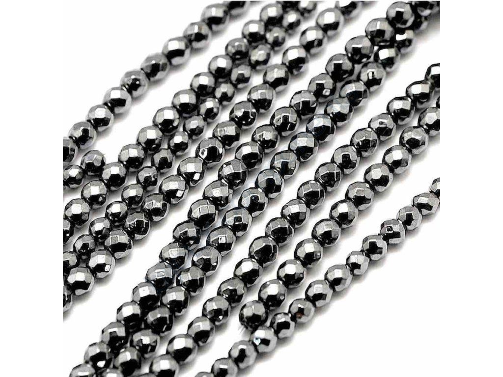 Polodrahokamové fasetované korálky, cca 3 mm - Hematit