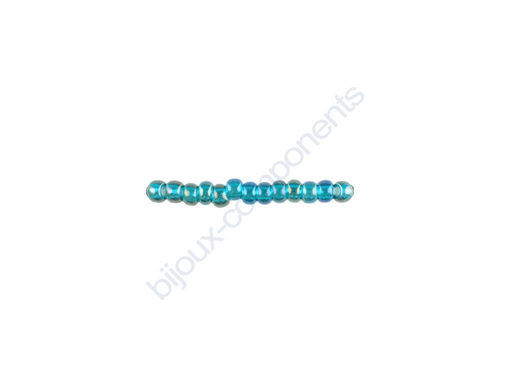 PRECIOSA rokajl - modrozelená / stříbrný průtah / rainbow, 10/0 cca 2,3mm