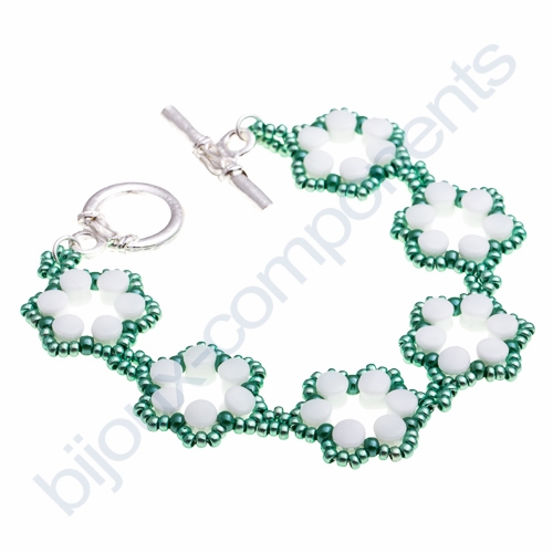 Abychom podpořili vaši fantazii, připravili jsme návod na základní použití těchto korálků. V návodu je náramek, ze základní kytičky ale snadno vyrobíte náušnice i náhrdelník, takže můžete mít celou sadu.