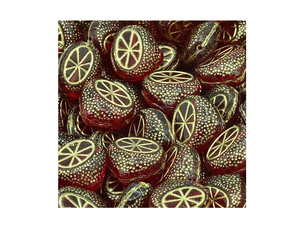 Skleněné korálky -citróny - červené se zlatým zatíráním