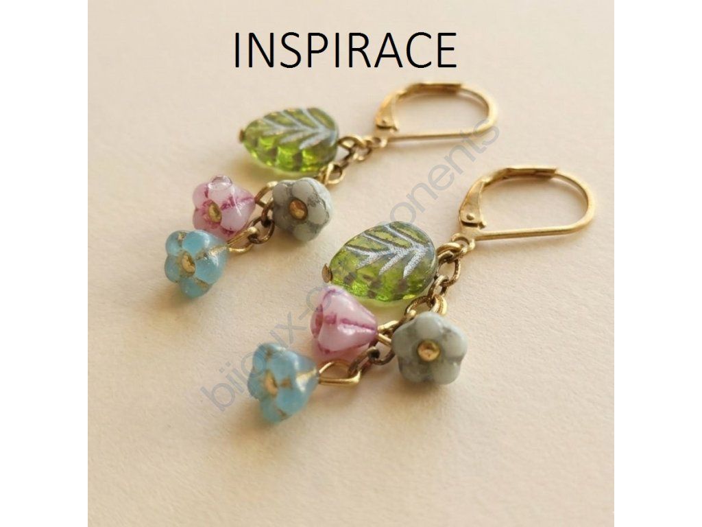 Skleněné korálky mačkané - kytičky / zvonečky, modré se stříbrným zatíráním