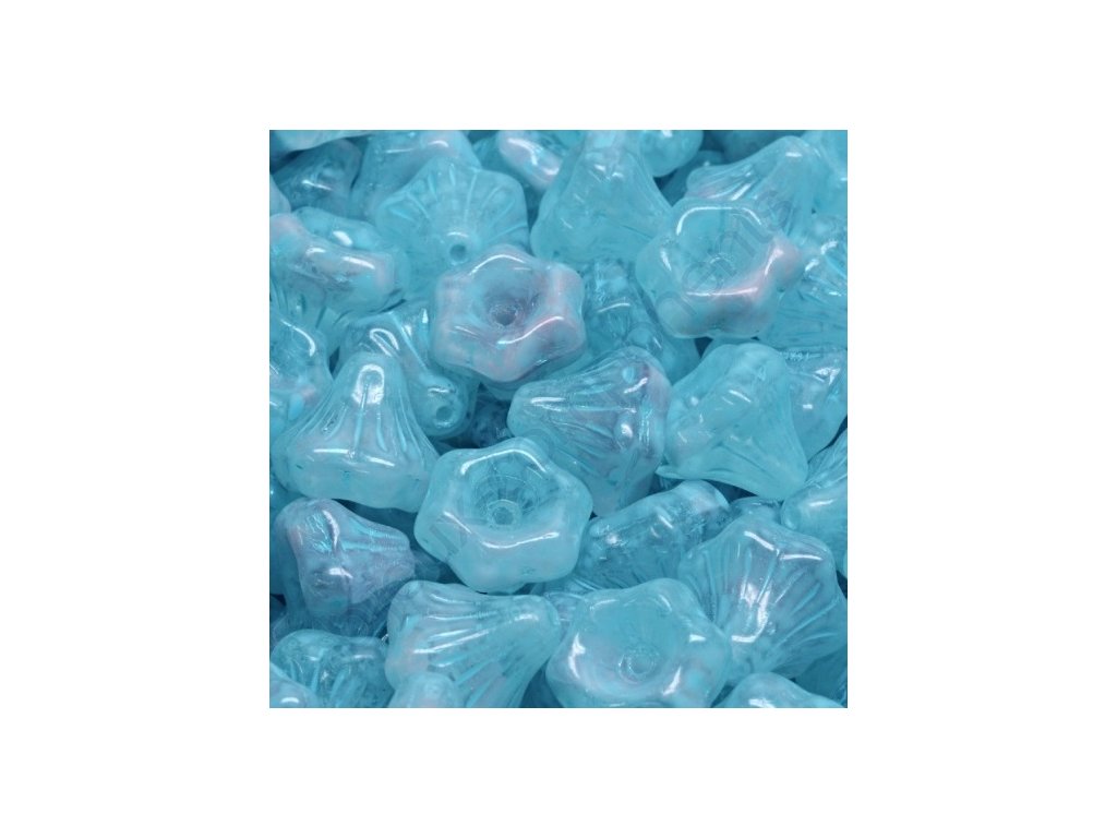 Skleněné korálky mačkané - kytičky / zvonečky, světle modré