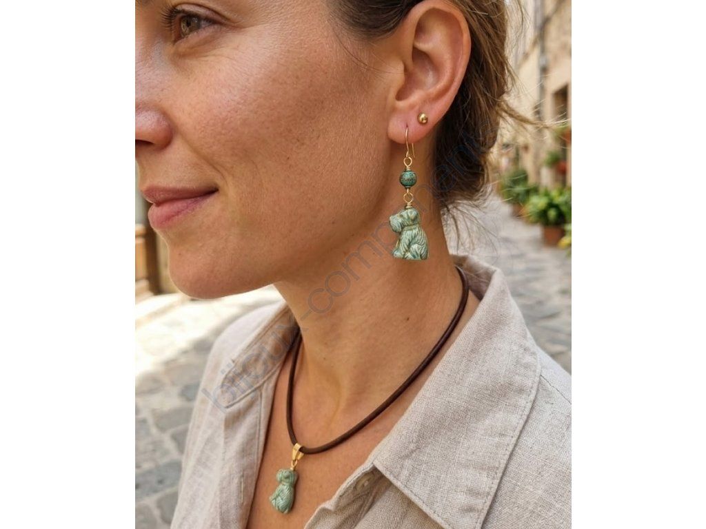 Dopřejte svým šperkům hravost a eleganci s tímto detailně propracovaným korálkem ve tvaru sedícího psa. Tento kousek není jen obyčejným komponentem, ale malým uměleckým dílem, které vzniklo pod rukama českých sklářů.