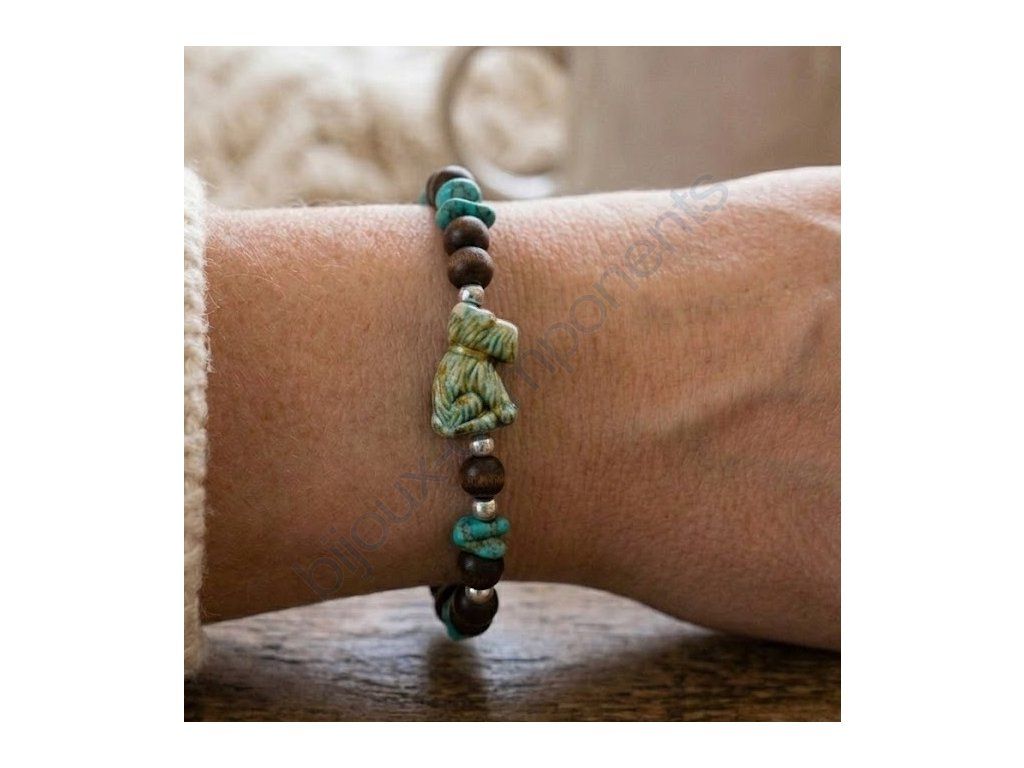 Skleněné korálky ve tvaru sedícího psa - zatíraný tyrkys