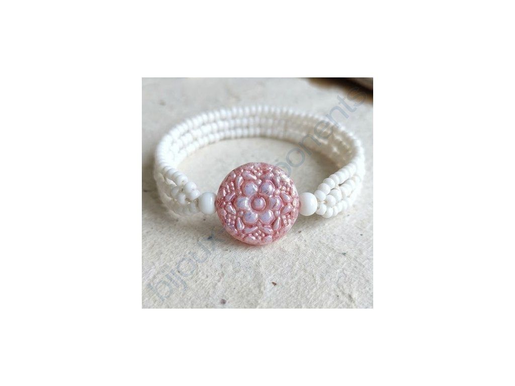 Skleněné mačkané korálky s kytičkou - Vesna - bílé se stříbrným zatíráním