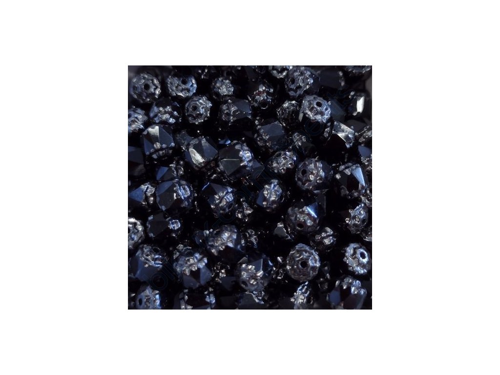 Skleněné ohňové korálky - bols (katedrály) - černé s tmavým stříbrným okrajem, 6 mm
