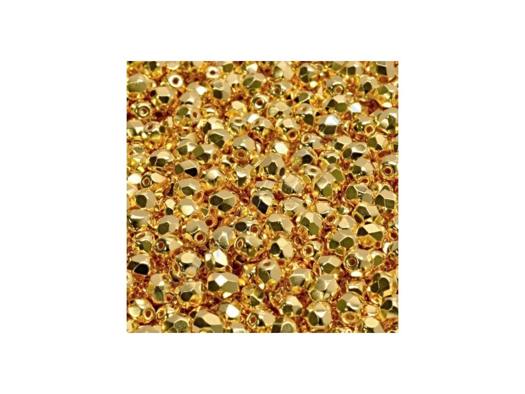 Skleněné ohňové korálky - krystalové s pokovem z pravého zlata, 4 mm