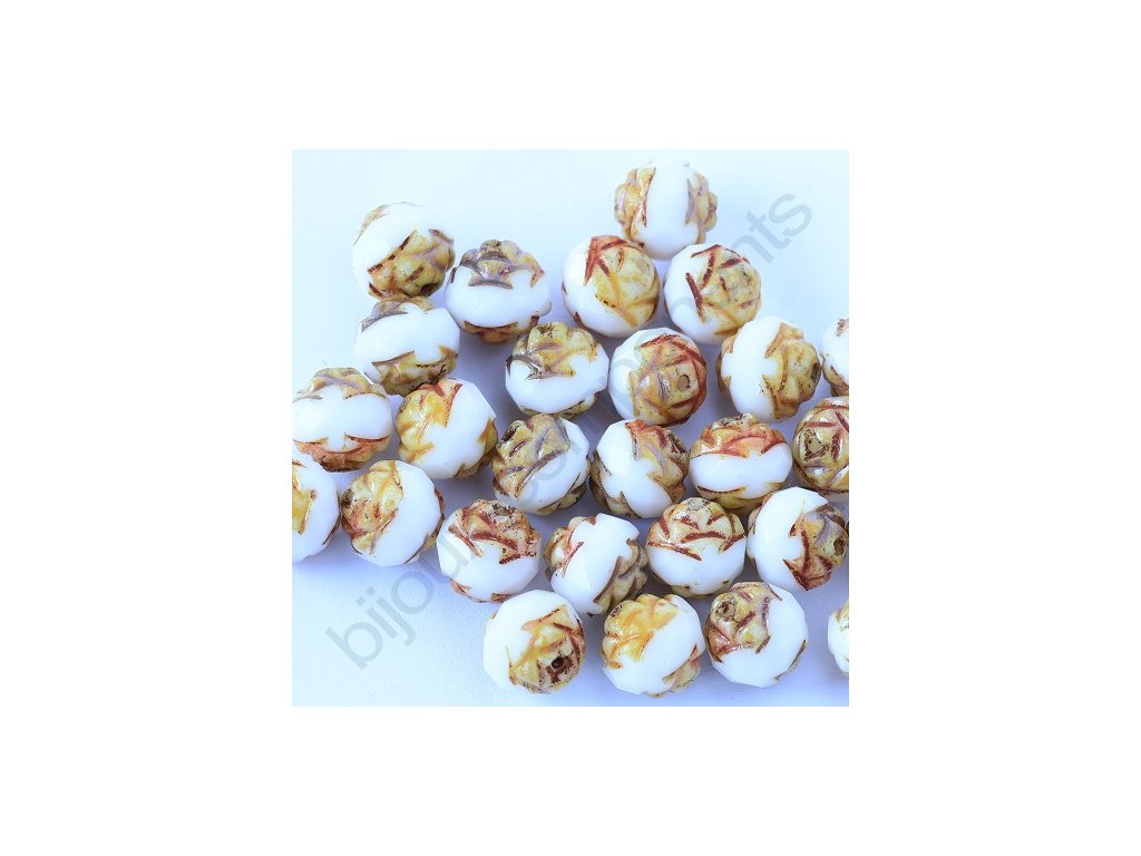 Skleněné ohňové korálky - růže - bílé s béžovým okrajem, 8 mm