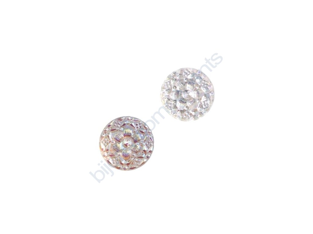 Skleněný kabošon, s květinovým motivem, krystal, s vrchním AB pokovem