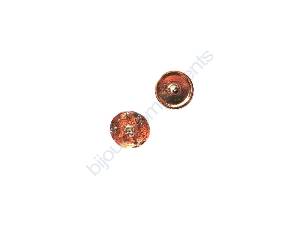 Skleněný knoflík, s květinovým motivem, lososový, s platinovým zdobením