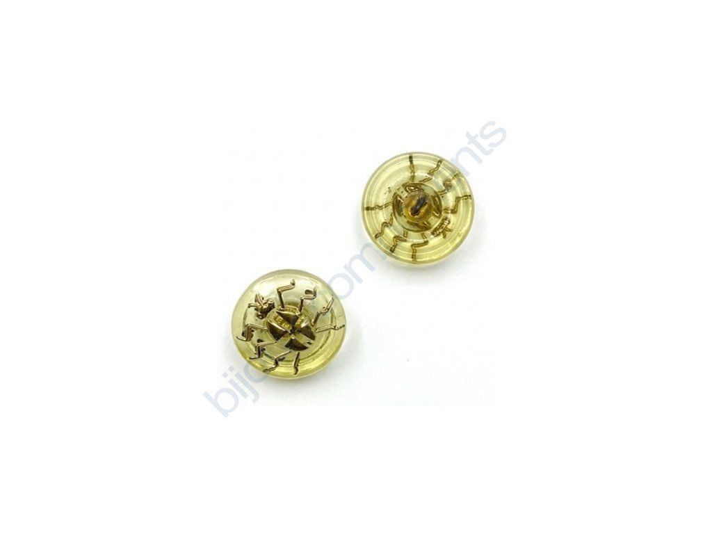Skleněný knoflík s motivem pavouka, žluté uranové sklo, motiv zlatý