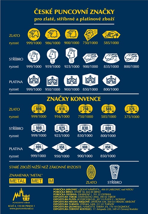 Upozorňujeme výrobce, že k dalšímu prodeji hotových výrobků ze stříbra Ag925 je nutná registrace u Puncovního úřadu!