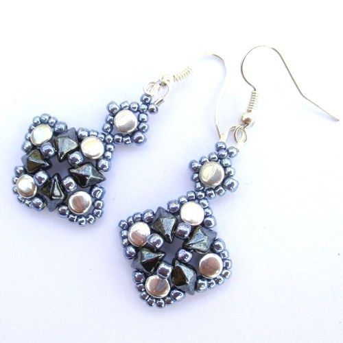 Návod je variabilní a můžete vytvořit čtvercový i trojúhelníkový tvar a z nich náušnice i náramky.