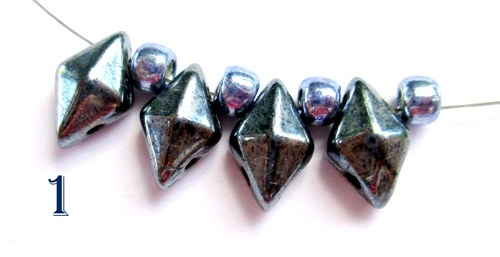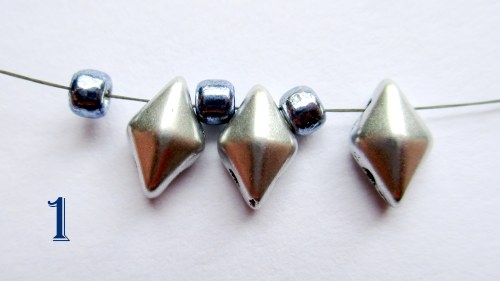 Na jehlu navlékněte 1 korálek T 8/0, 1 korálek DD a to celé celkem 3x (obr. 1).