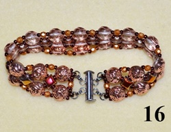 Nit zapošijte a ustřihněte. Náramek máte hotov (obr. 15). Do T 8/0 přidejte kroužky a zapínání (obr. 16).
