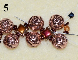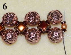Pro větší zpevnění prošijte všechny následující korálky v řadě (obr. 5). Dále prošijte D, O, D (obr. 6).