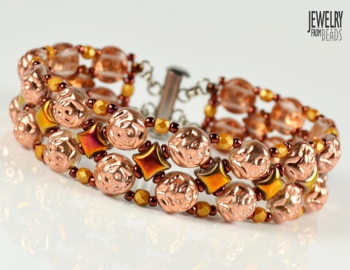 Korálky PRECIOSA Candy Rose mě svým tvarem velmi zaujaly. V kombinaci s WIBEDUO vytváří jednoduchou linii, nádherně se doplňují a s broušenými ohňovými korálky náramek krásně podtrhnou. Opět je to jeden z návodů, který zvládnou i šikovné začátečnice. Barevná škála těchto korálků je pestrá, takže si určitě každá z vás vybere tu svou. Držím vám palce a těším se na vaše kombinace :-).